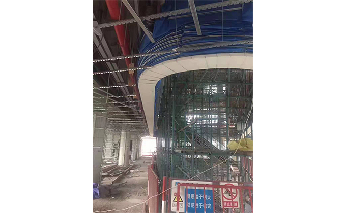 擋煙垂簾垂壁根據(jù)設(shè)計(jì)要求和現(xiàn)場(chǎng)實(shí)際情況采取如下施工順序:首先,搭設(shè)腳手架一放線一打眼--上脹栓一焊骨架。第二,吊件一安裝骨架…